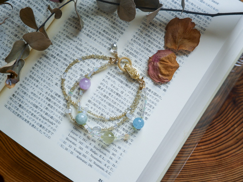 余談ですが、Special Amulet [ 四元素(テーセラ・スティヒア) – Hēmerā – ] 、Hēmerā (ヘメレー)は、ギリシャ神話の昼の女神。このブレスレットには、昼の四大元素ブレスレットという裏名が付いております。「昼の」となっているということは、「夜の」…も、もしかしたらあるかもしれませんね、、、なんてね、、、(お披露目は3月ごろ、かな、、、などと自分の首を絞めていくスタイル)。